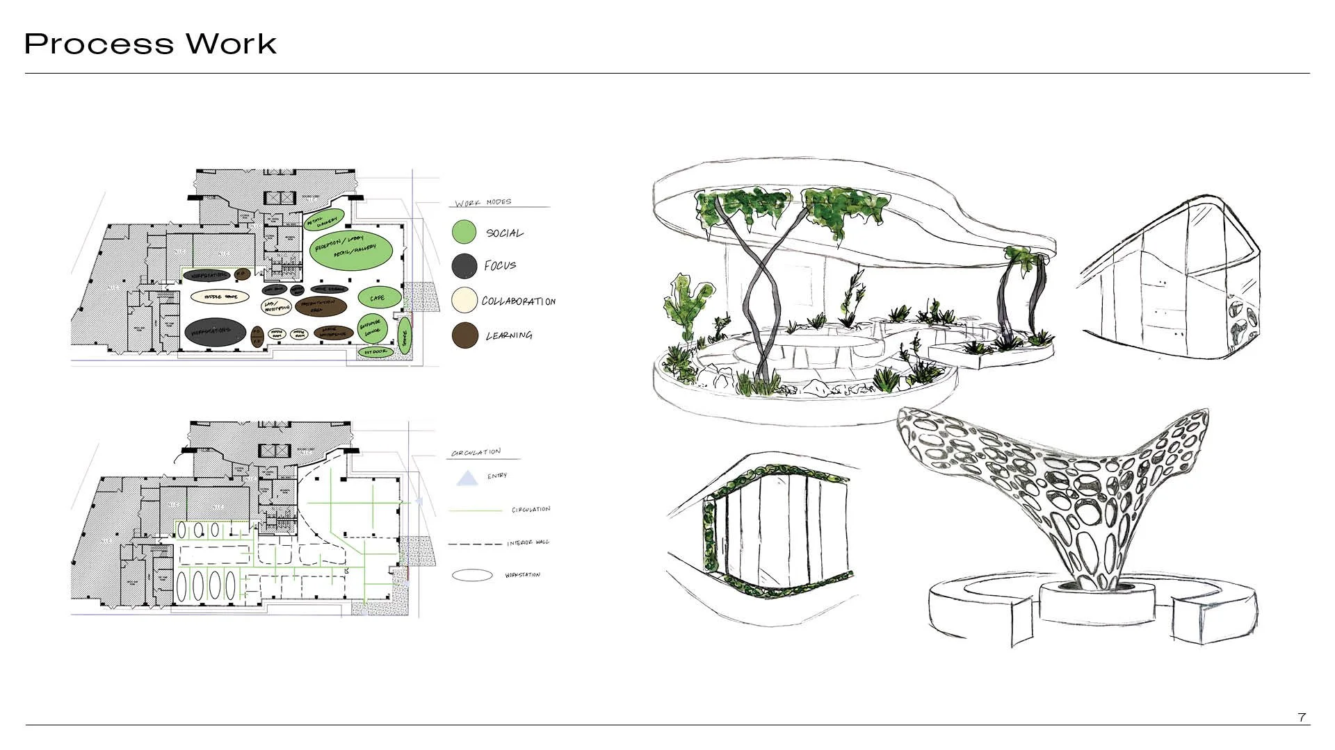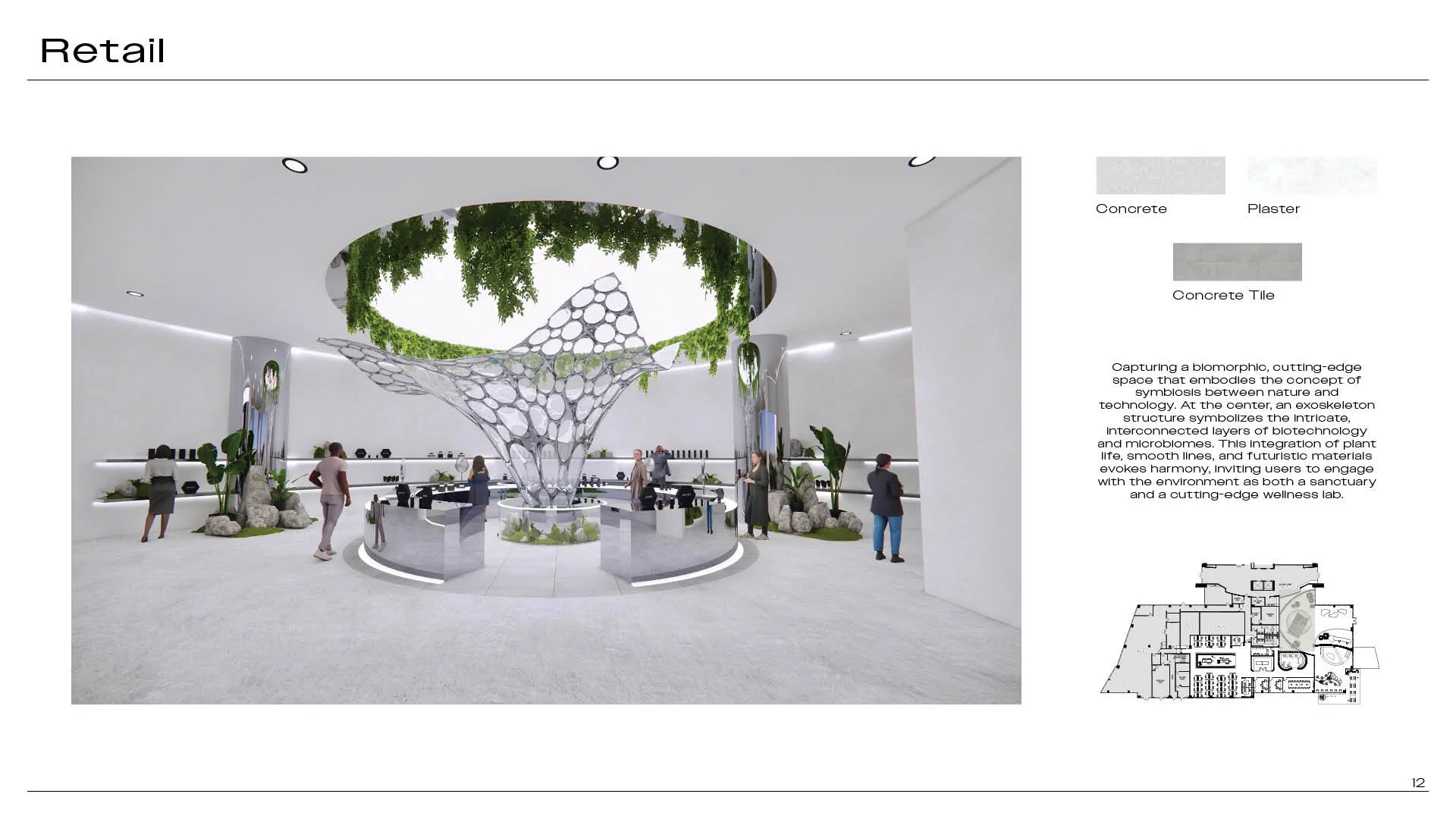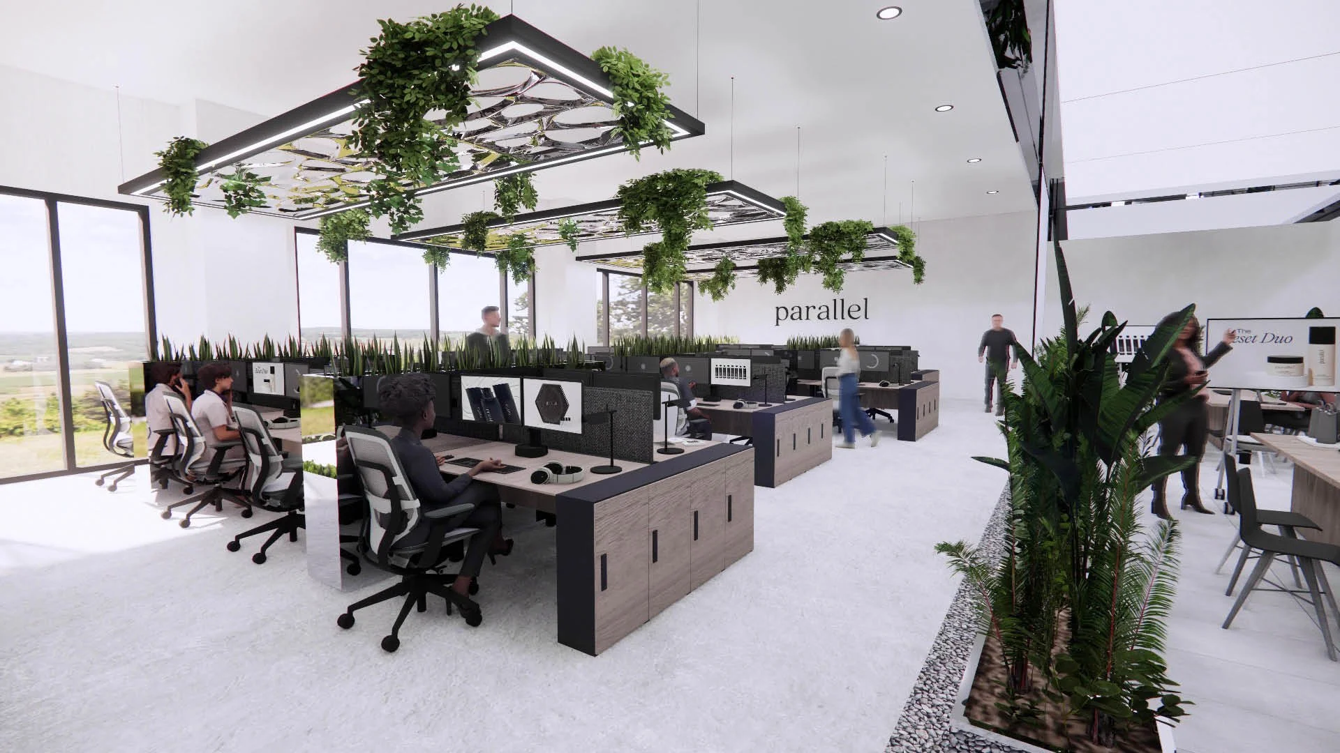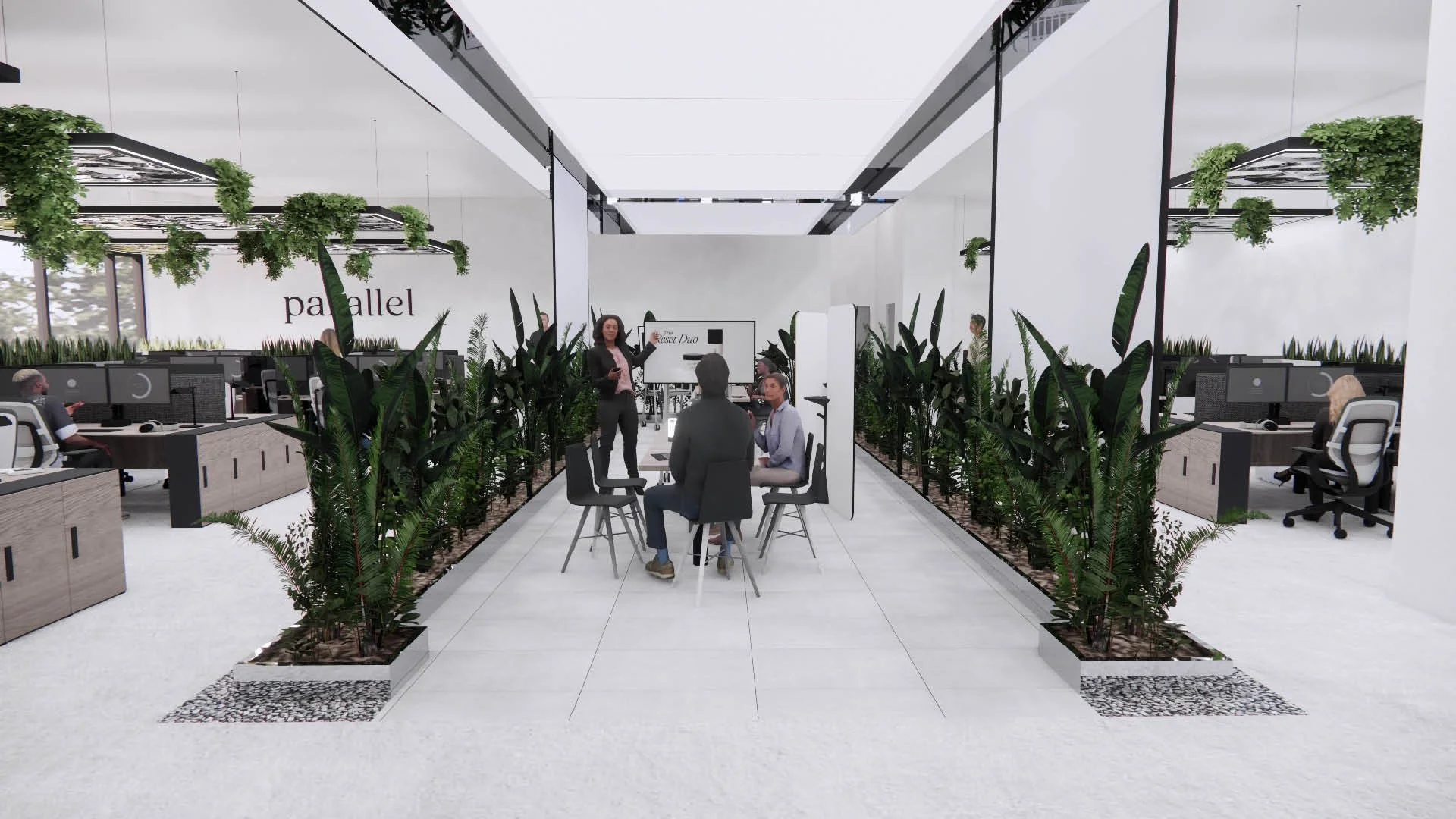 Parallel’s office embodies a seamless fusion of nature and biotechnology, creating a sanctuary where wellness and innovation coexist. Inspired by the symbiotic relationship between microbiomes and biotechnology, the design is structured around an "exoskeleton" that reflects the support technology brings to natural wellness.